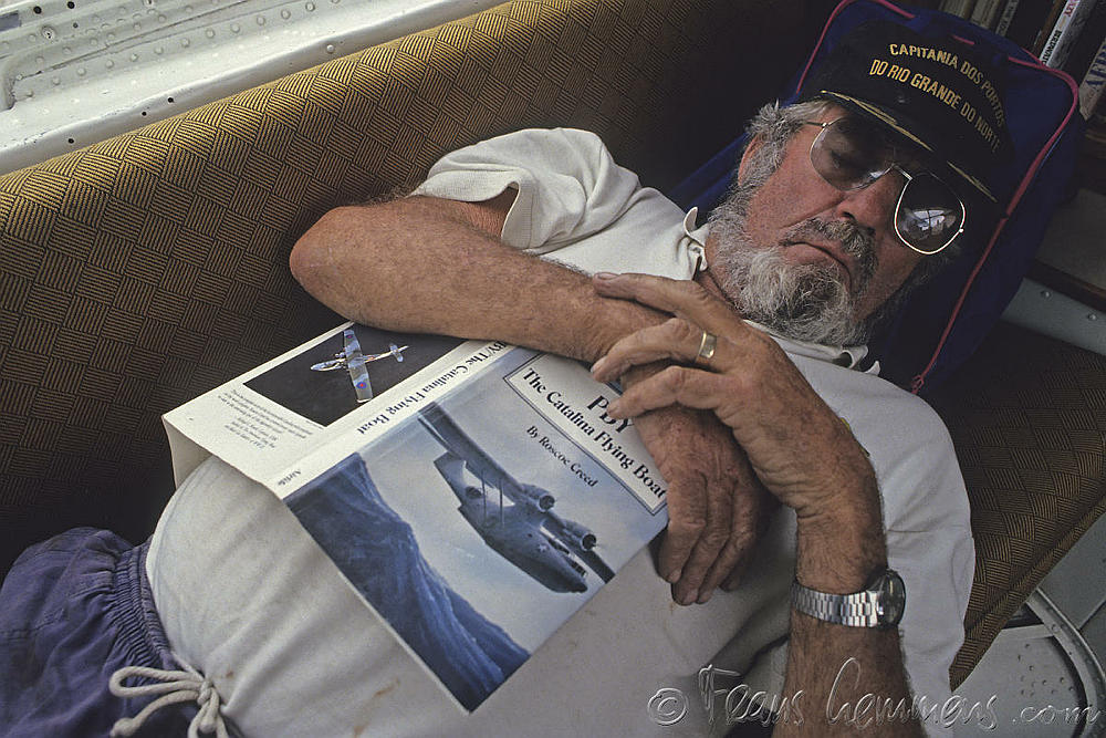 Ecuador, Ottovalo. Mechanic of Catalina PBY-5A hydroplane resting. Peter Stuyvesant Travel Odyssey 1993/1994.